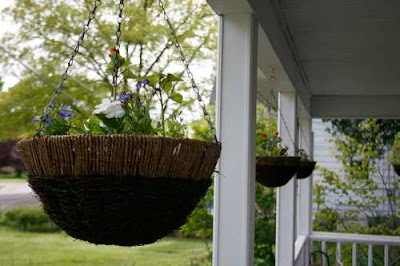 Party Prep continues and the hanging baskets were planted. I meant to do it but ran out of time. Thanks to mom and Suzanne they look beautiful!